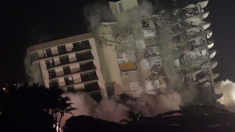 La noche de ayer fueron demolidos los restos del edificio Champlain Towers South, en Miami, que se vino abajo el 24 de junio con un resultado de 24 muertos y 121 desaparecidos.