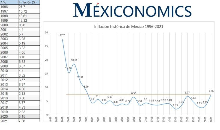 Según INEGI, la inflación en México cerró 2021 en 7.36%, siendo la inflación más alta que registra el país desde el año 2000 que fue de
